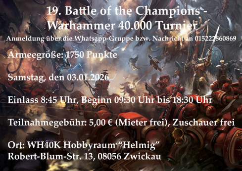 Willkommen bei Battle of the Champions, der Infoseite über die gleichnamige Warhammer 40.000-Turnierserie in Sachsen!